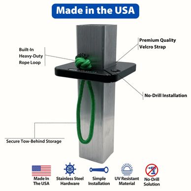 Tube Bloxx—the ultimate dock storage solution. Featuring a heavy-duty rope loop for quick connections and a Velcro strap to neatly store your tow rope